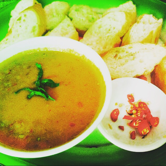 Pho (pronounced ‘fur’) is a signature dish in Vietnam. It is typically made with bone broth but this particular one at Pho 2000, is made from pure veggie goodness! You will find this restaurant near the Binh Thanh Market on the second floor of a coffee shop. The crackling on the top is fried bean curd, which was incredibly tasty!