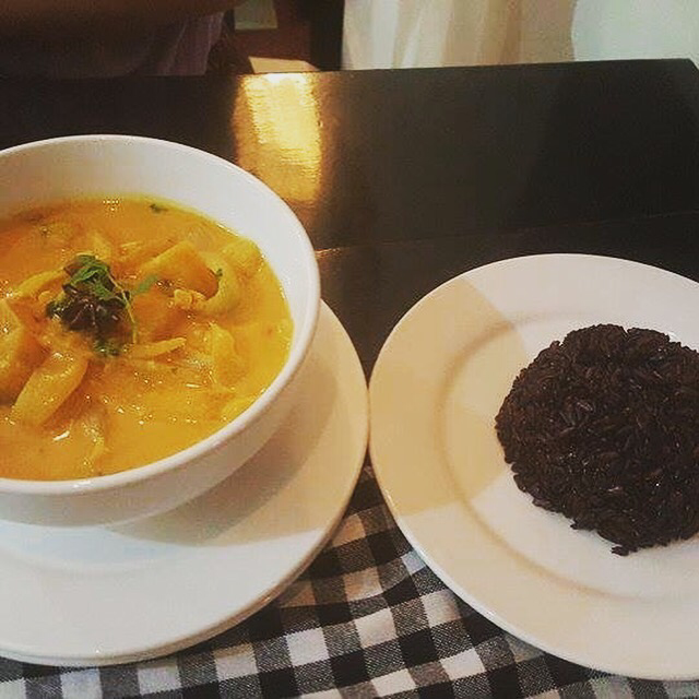 The Corn serves all main meals with black sticky rice, which looks like chocolate. This curry consisted of banana, potato, coconut milk & veggies. Amazing!