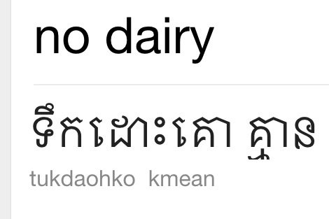 Okay, so once you get to Cambodia, throw out Cici’s guide, as the language spoken here is Khmer. Unfortunately, we didn’t have a translated guide for Cambodia, so I just used Google Translate & pointed to the following pictures on my phone, which worked a treat! It really helped the flow of communication!