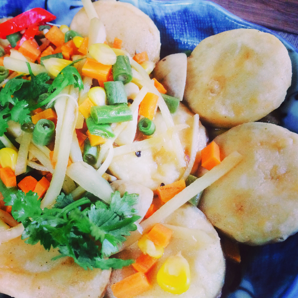 Soft golden Tofu Medallions With veggies!