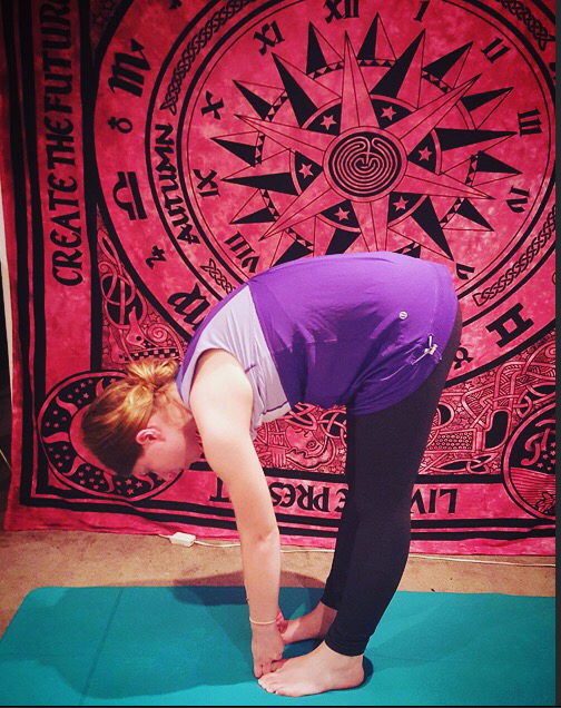 Day Twenty Four: Parsvottanasana – Intense Side Stretch Pose. This pose requires a lot of openness in the shoulders, in order to take the hands into Reverse Namaste. On top of all that, it is difficult to straighten the front leg if you have tight hamstrings, hence my bent one. It is however, a beautiful posture. I need to give a shout out to my amazing pair of bell bottoms that are super comfortable to practice yoga in.