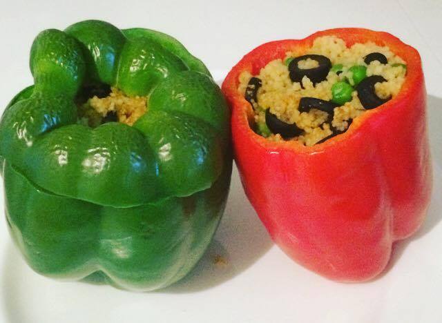Yum! Red, green, yellow, orange who cares? Purchase 4 big Capsicums, hollow them out and set on a baking tray. Pre-heat the oven to 200 C and begin cooking the filling. I steam some corn cous cous, then cook it with mint peas & olives. I also like to add in paprika, cumin and some cracked pepper to give it flavour. Once the mixture is ready, fill your capsicums and pop in the oven with the ‘lids’ on top. Cook for about 25-30 mins (this can depend on the oven) and serve! Eat the whole thing, not just the filling! There is so much nutrition in the flesh of the capsicum, as well as plenty of water! Tasty & simple!