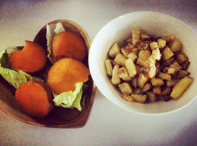 Baked potatoes are incredibly nutritious. Purchase a large sweet potato & a bag of Dutch Cream potatoes. Cut the sweet potato in half, pierce holes all over both halves and wrap them in foil. Bake in the oven for an hour on 200C. In the meantime, wash & scrub your Dutch Cream’s but keep the skins on (there is so much nutrition in the outer layer, so no peeling). Chop your potatoes into wedges or strips and bring a pot of water to boil. Once it starts bubbling, put all of your potatoes in and let them cook for 5 mins. Drain and put the potatoes back in the pot. Add a tablespoon of All Purpose flour & cracked pepper, cover the pot and shake it so all of the potatoes are covered evenly. Spread them over a couple of trays and pop in the oven for 25 mins. Take out all of your potatoes and add them to your bowls with fresh lettuce cups & chopped baby cucumber. The chips should be super crispy!