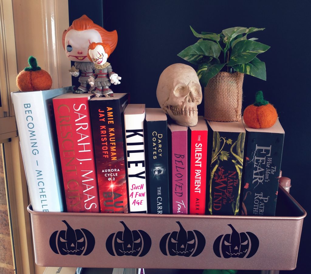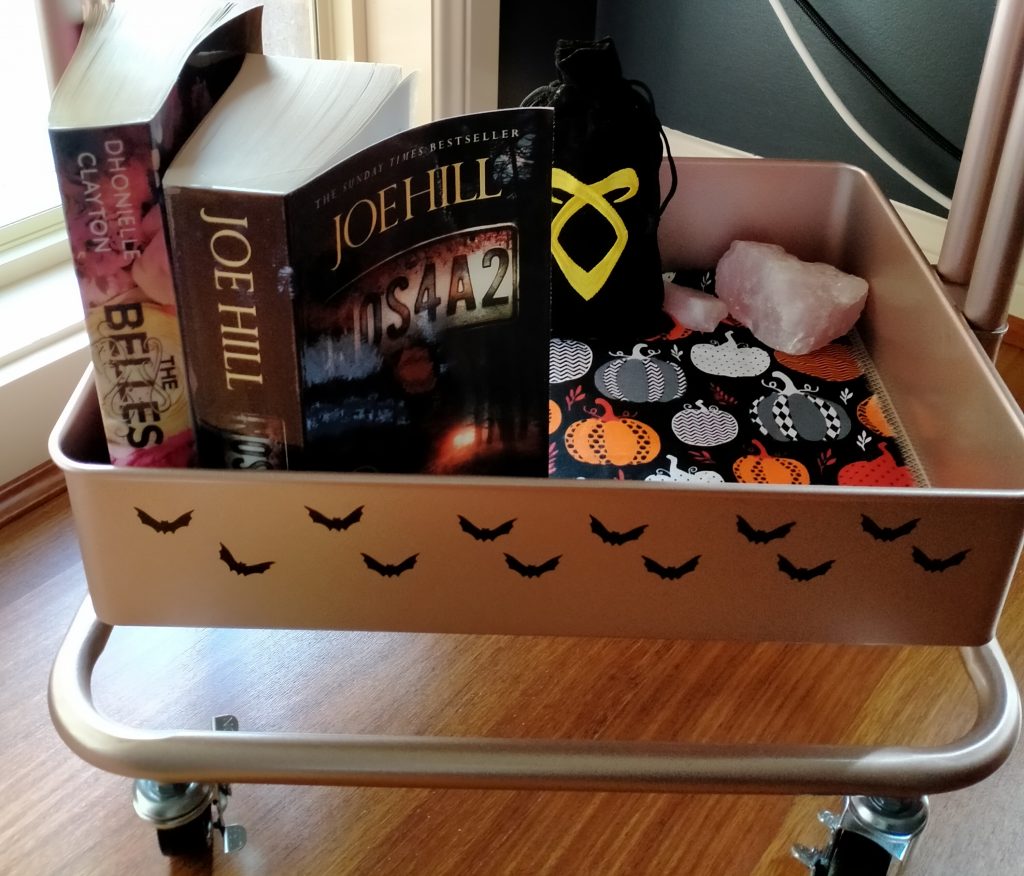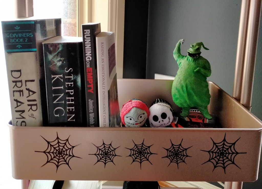 TBR carts are incredibly popular amongst book-lovers. I ordered mine in rose gold here. Owners love to decorate them, filling them with books they have yet to read. In keeping with the concept of my spooky bookclub, I decided to theme my cart: ‘Halloween Forever.’