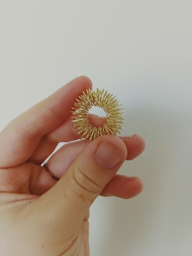Day 7 were these two red and green tubes. They are sealed at the top and bottom, with a marble in the centre. The aim is to push them up and down with your fingers. You don’t realise how satisfying these items are, until you have them in your hands.
