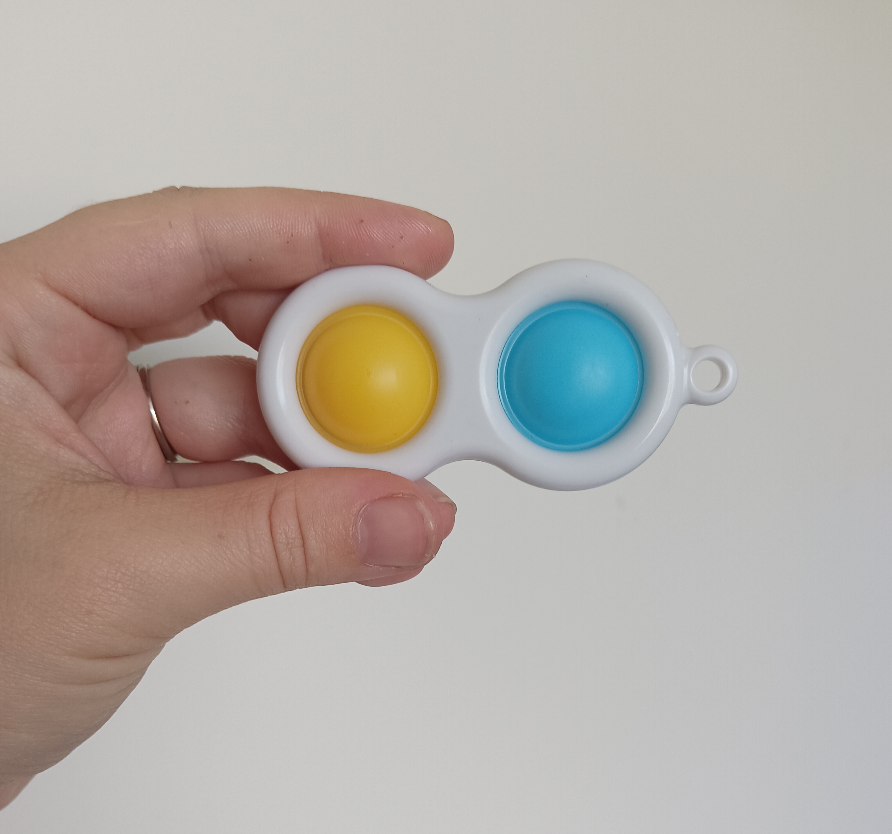 Day 19 was more for the adult, than the child. It’s a stress, fidget toy one must squeeze, to make the suction caps touch. Abi doesn’t have the strength to push them together.