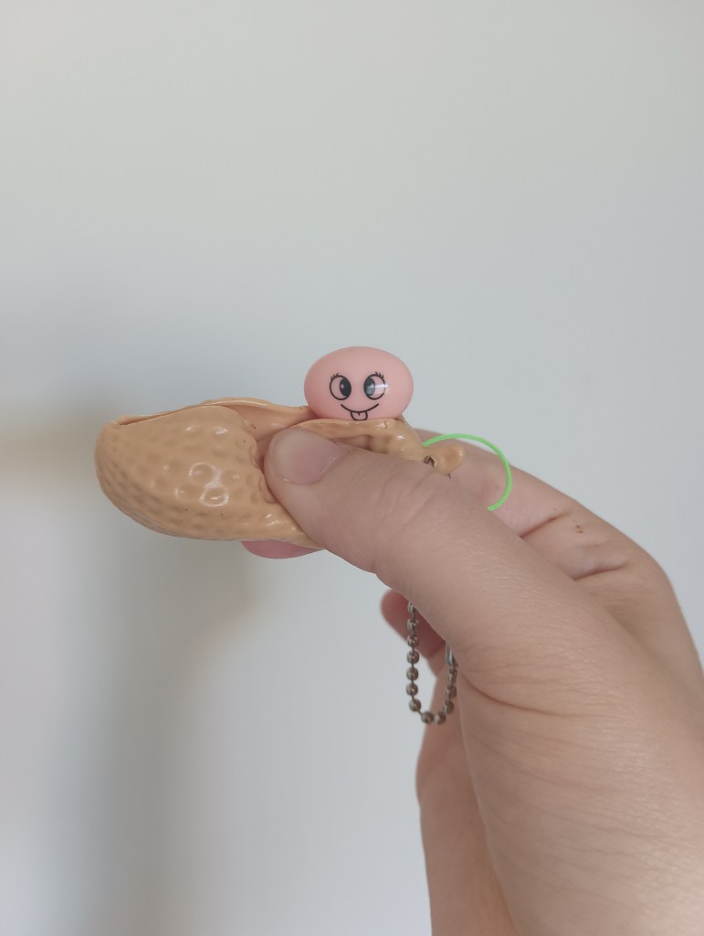 Day 2 was one of my favourites. It’s a keyring. If you squeeze it, the peas appear out of the pod. I love their cute faces!