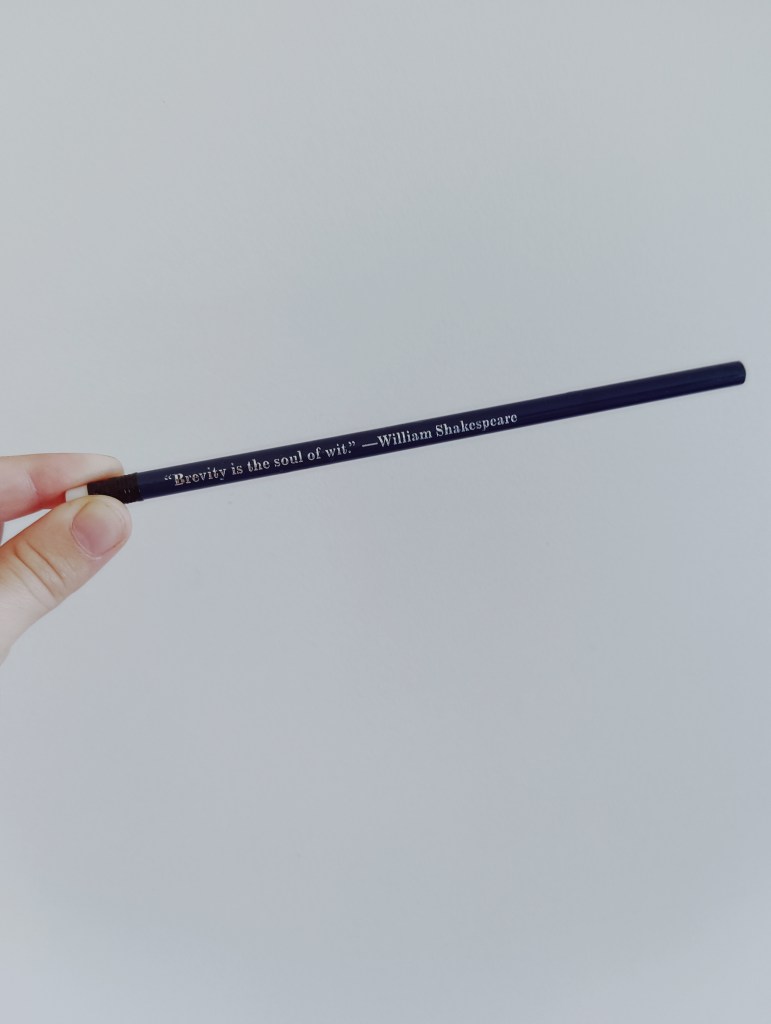 My prize for completing the prompt was a pencil with an eraser at one end. It reads: “Brevity is the soul of wit” – William Shakespeare. I love it!