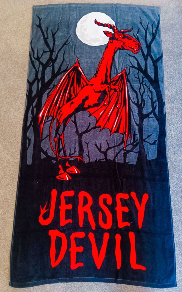 The Jersey Devil is a legendary cryptid, said to inhabit the forests in South Jersey. A horror movie titled The Barrens was made about this creepy creature. I love the design and feel of this towel. It’s super soft. I will absolutely be using it at the beach this summer.