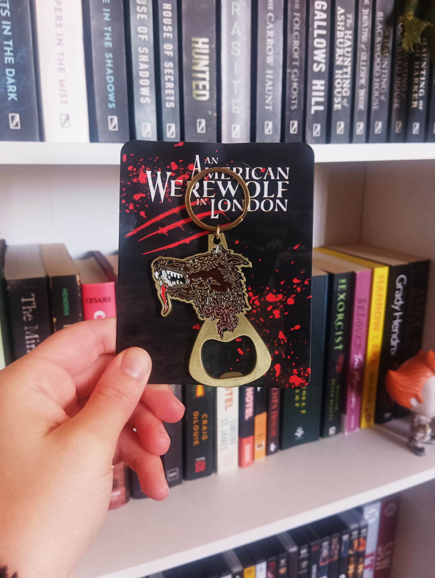 An American Werewolf in London is one of my favourite horror movies, so I was thrilled to receive this key chain. As you can see, it also doubles as a bottle opener. I love The Slaughtered Lamb design. I have a t-shirt and beanie with the same print.