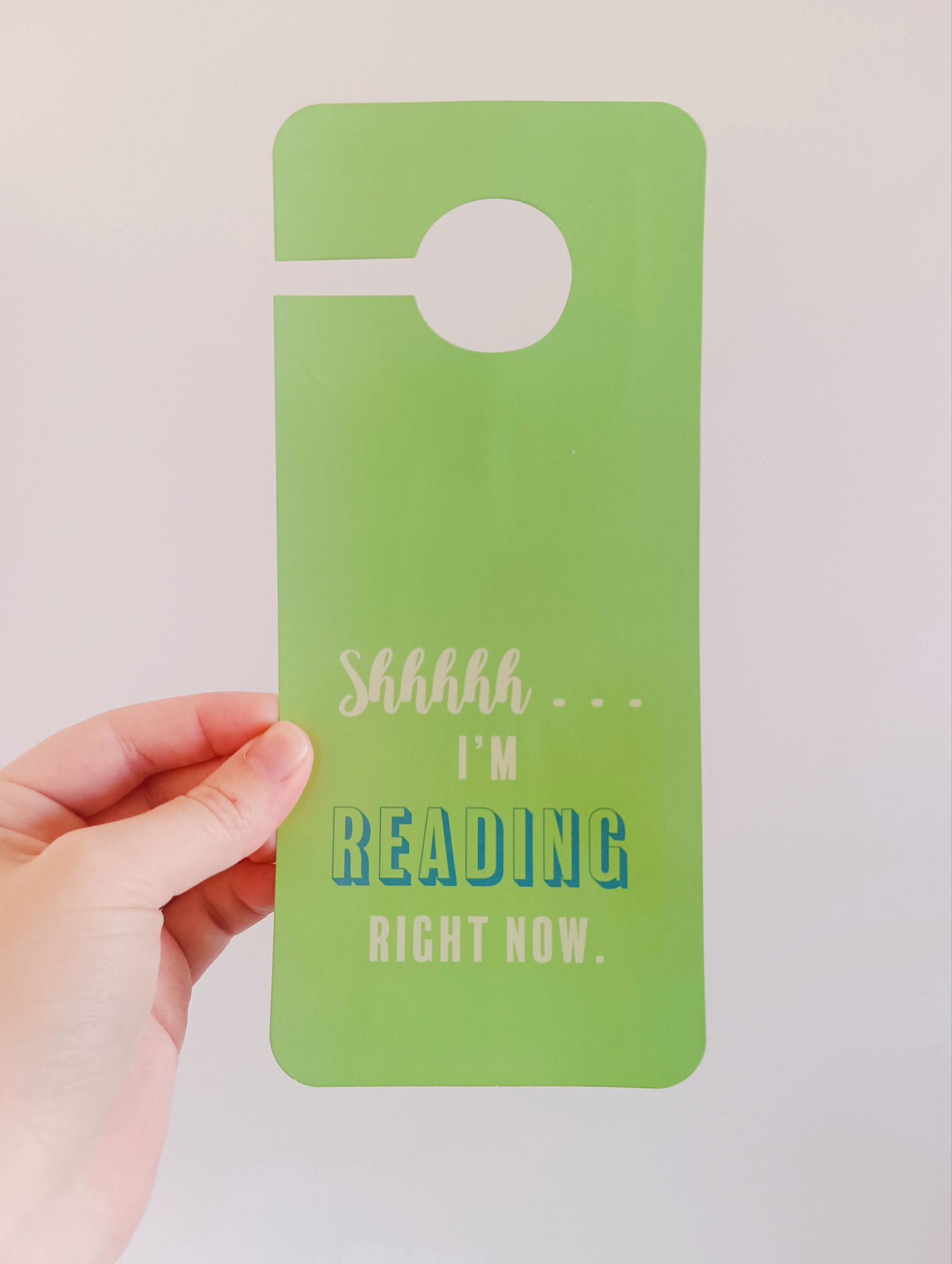 My prize for completing the prompt was a lime-green door sign that says ‘shhhhh… I’m reading right now.’ It’s very cute.