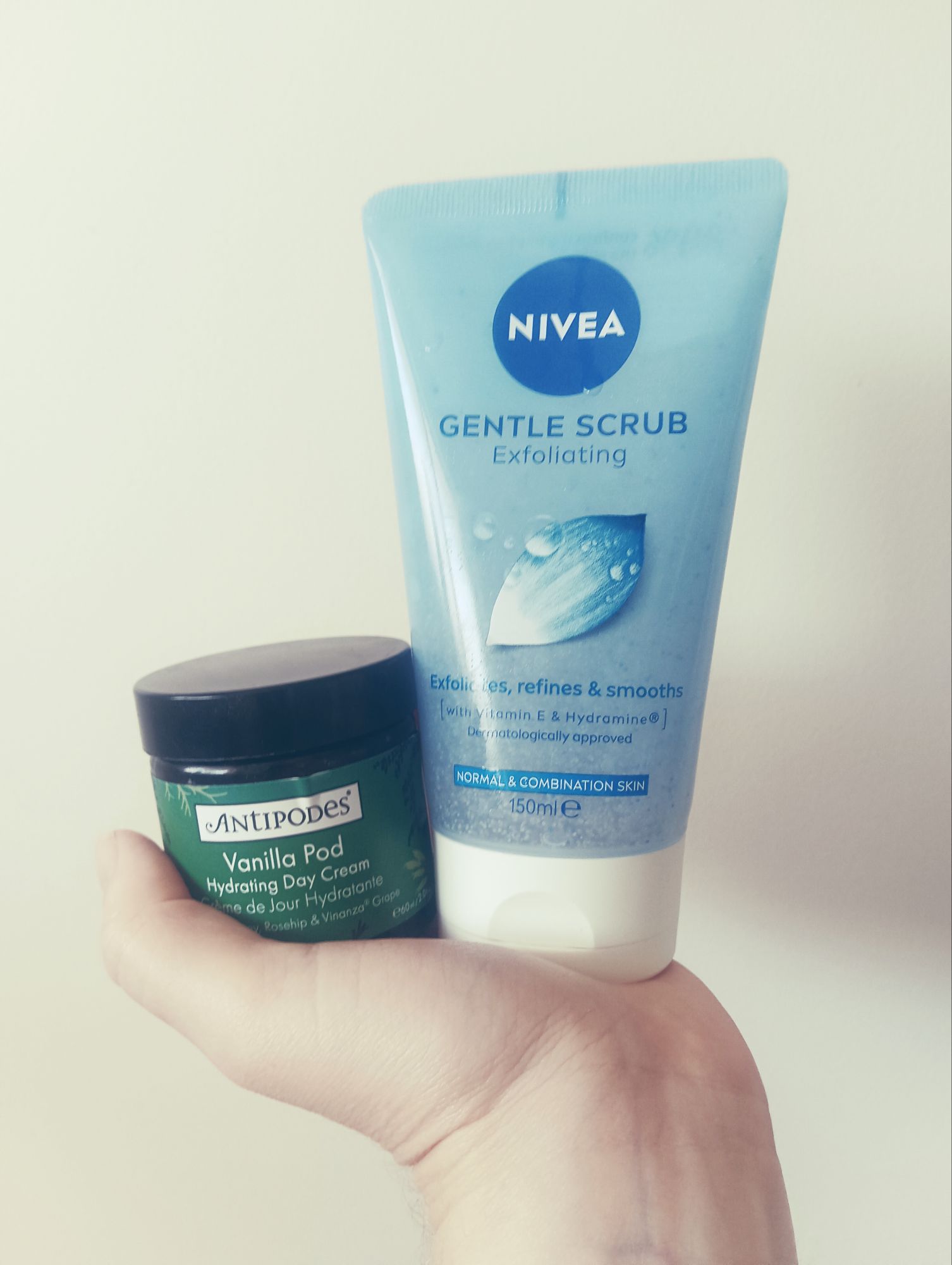 For some reason, I had always believed I had oily skin, when actually, I have very dry skin. For this reason, before applying any makeup, I need to moisturise my face. It must provide hydration, otherwise the application won’t be smooth. I use this hydrating cream from AntipodesI also exfoliate the dry dead skin cells off my face three times a week with this exfoliating scrub from Nivea