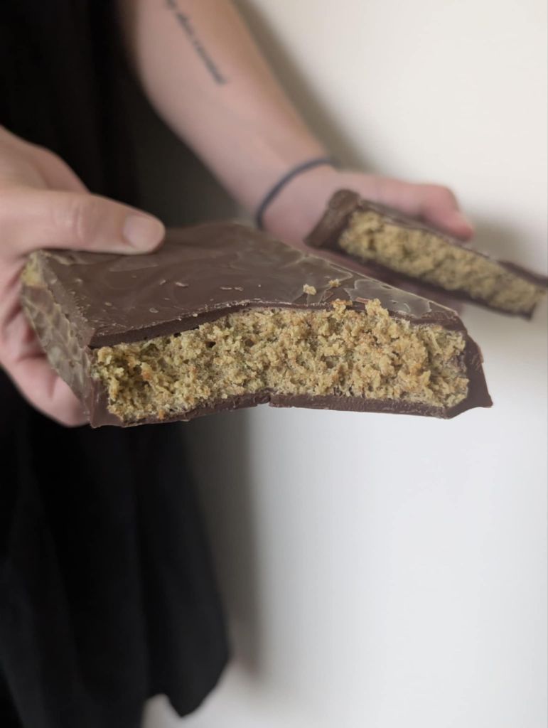 I ordered mine from a place in Sydney, NSW called Cafe on Haig. I purchased the Dubai Pistachio Chocolate but you can also get Kinder Bueno, Nutella, Caramilk & Biscoff from them. If you’re in the area, you can pick up from their store, but get in quickly before the daily batch are gone! I discovered this cafe via TikTok, where you can actually watch them make the blocks. That’s how I knew what I was buying was authentic. As you can see, the bar itself is HUGE. I definitely didn’t eat it all in one sitting.