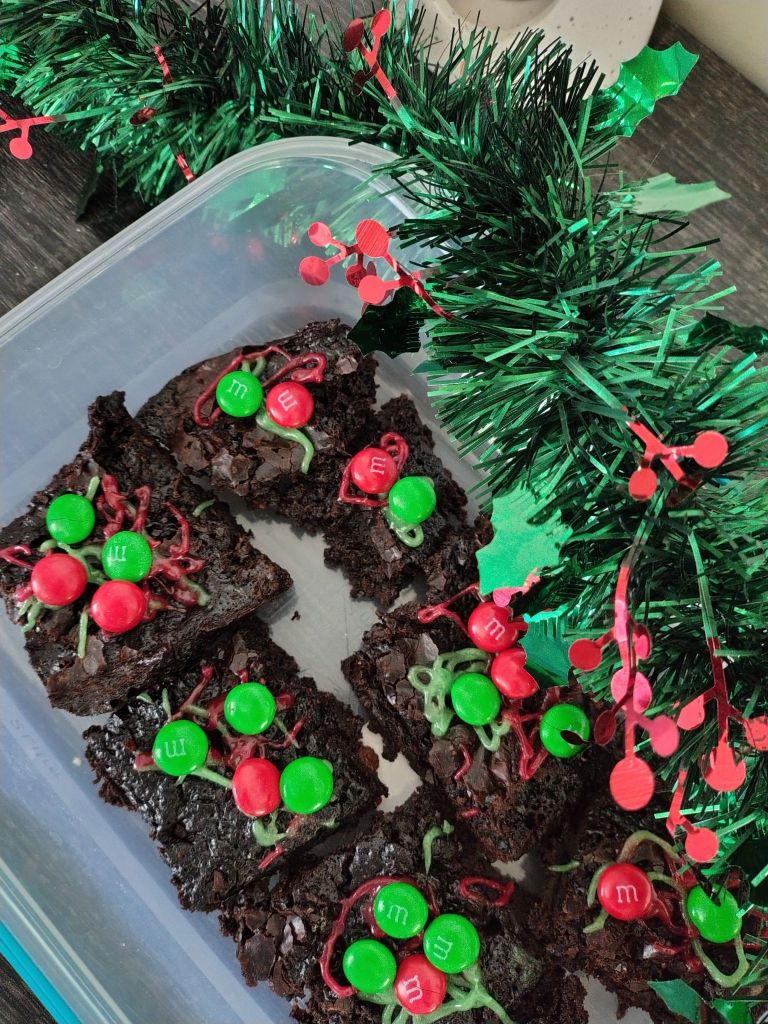In December, Abigail and I made Christmas brownies for her class. They were chewy but delicious!