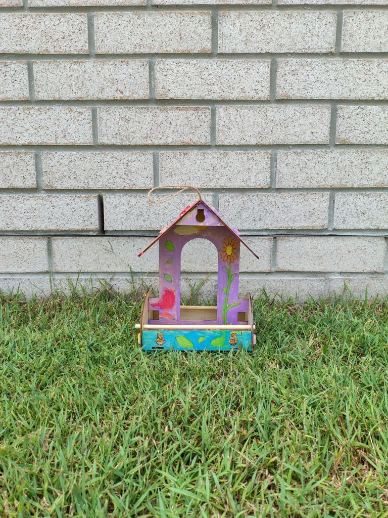Abigail and I picked up the kit below from Officeworks and built it together. We painted it and filled it with seeds. The birds slowly trickled into the garden but to be honest, we didn’t attract as many customers as initially expected.