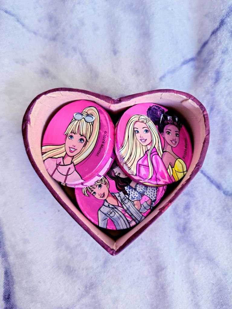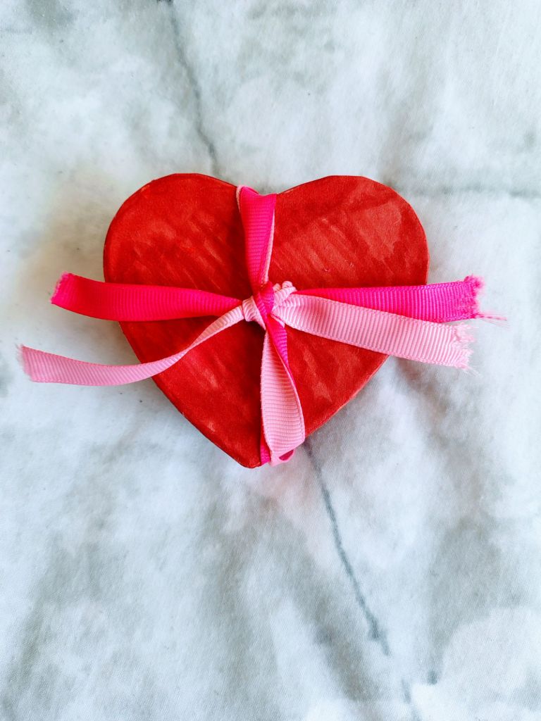 For Valentine’s Day, I bought a heart-shaped wooden box from Kmart, coloured it, filled it with Barbie chocolate coins, tied it with a ribbon and gave it to my daughter. She absolutely loved it!