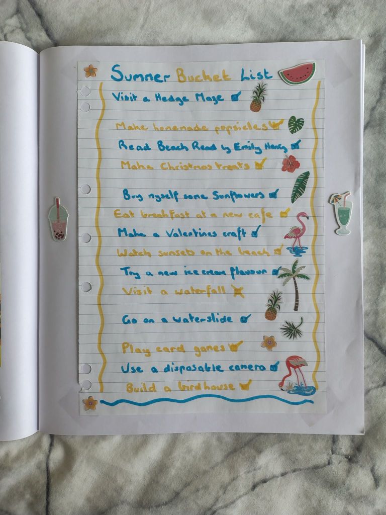 Welcome back to my series titled: Seasonal Splendour. My daughter and I started a tradition of making bucket lists per season; ticking off the prompts as we met them. It’s been such a fun bonding experience, but it has also allowed us to romanticise the different times of year. We completed Spring first and now, here is Summer! Below is the bucket list we made and a photo diary of our adventures. The only one we didn’t get to was ‘Visit a Waterfall.’ Without further ado, let’s get into it!