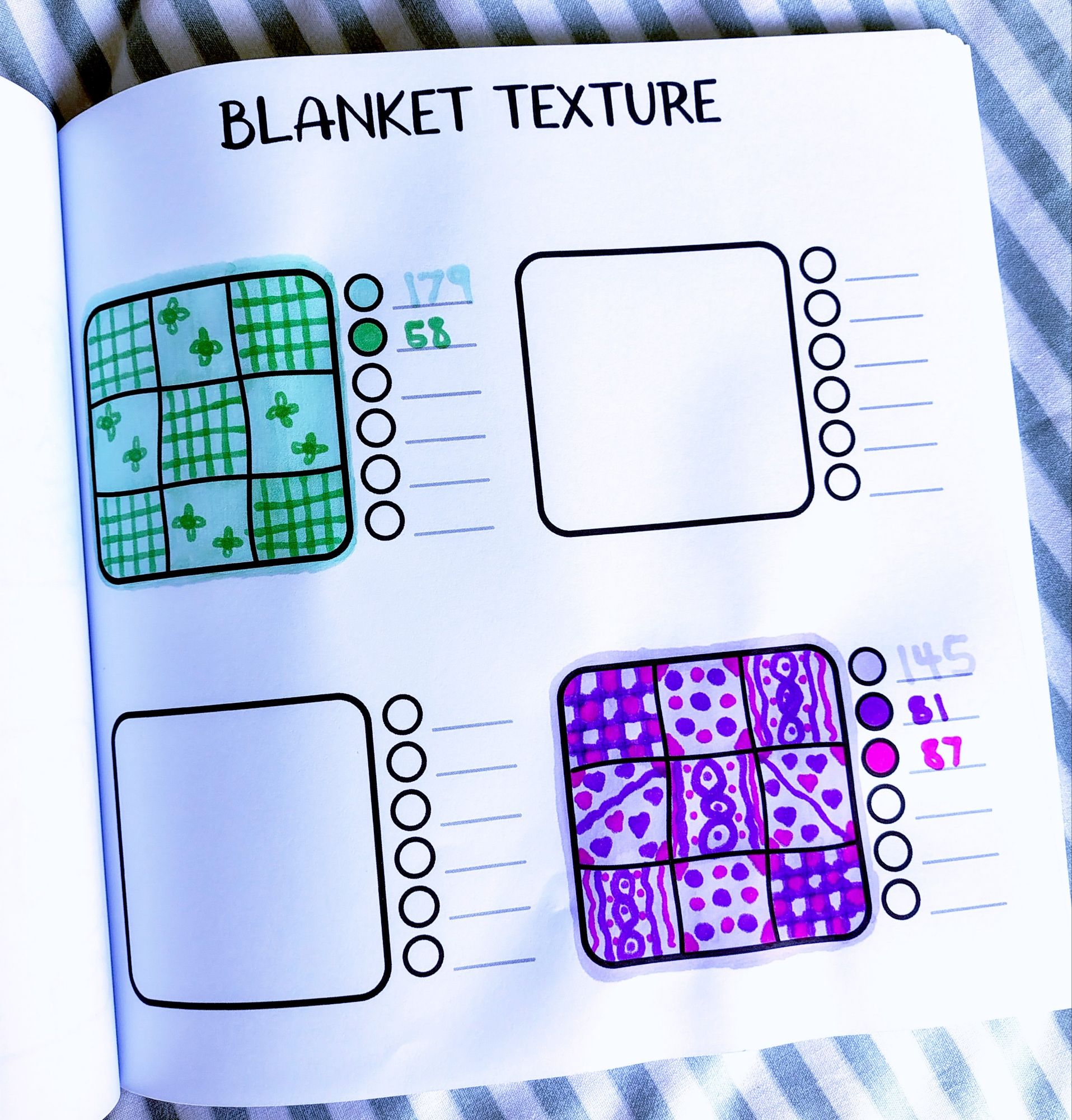 There are no rules to blanket textures. You can use as many colours and patterns as you like. I am not quite where I want to be with them just yet, but as you can see, I’m playing around. I can’t wait to incorporate a design I’m happy with onto the page.